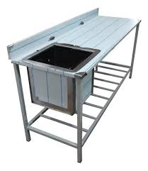 Mesada de acero inoxidable 1mm, estructura de hierro 30x30mm pintada epoxi termoconvertible, estante rejilla y zócalo