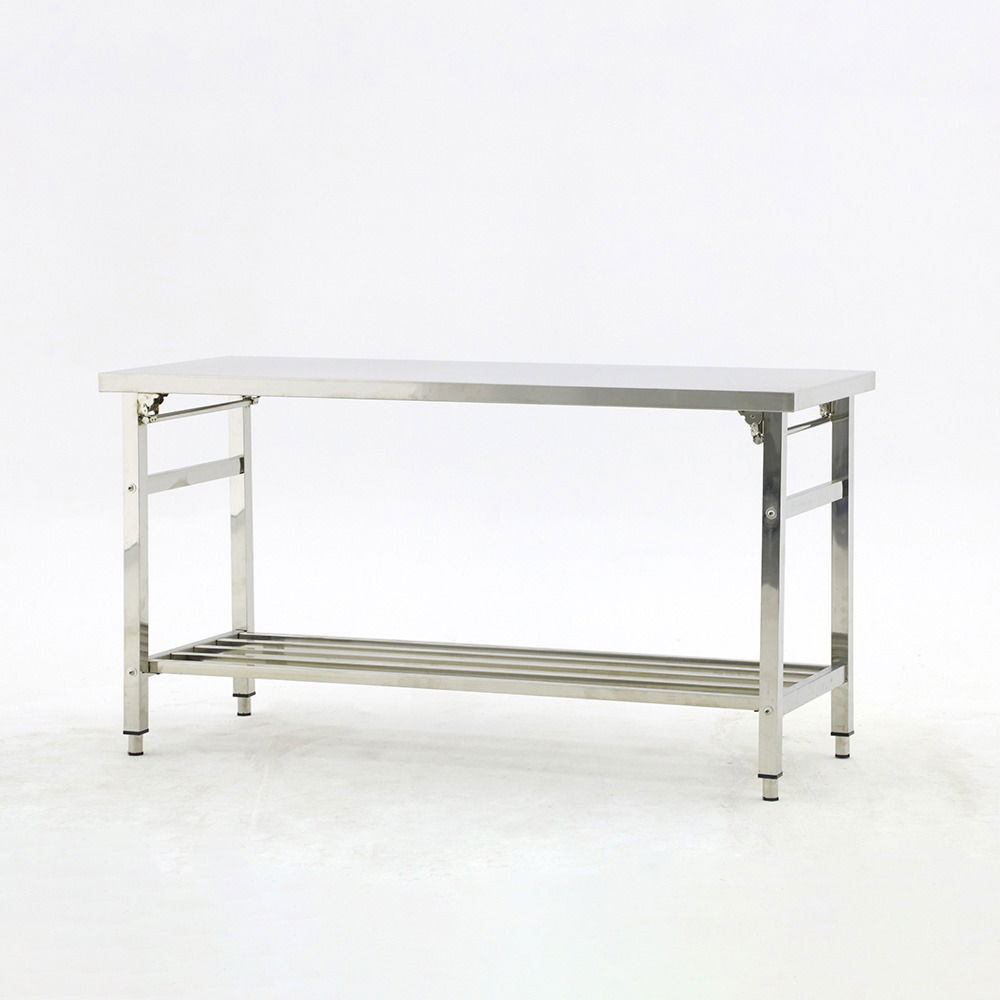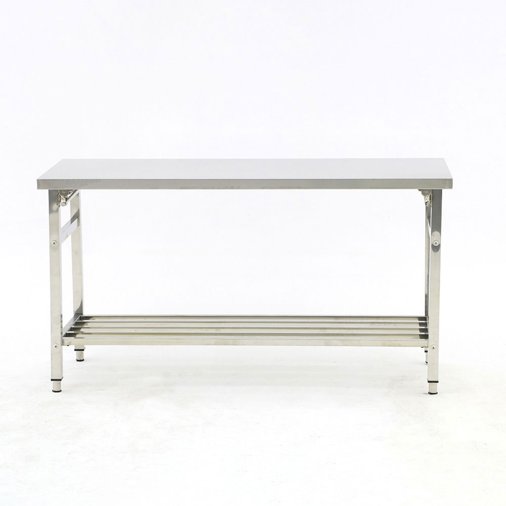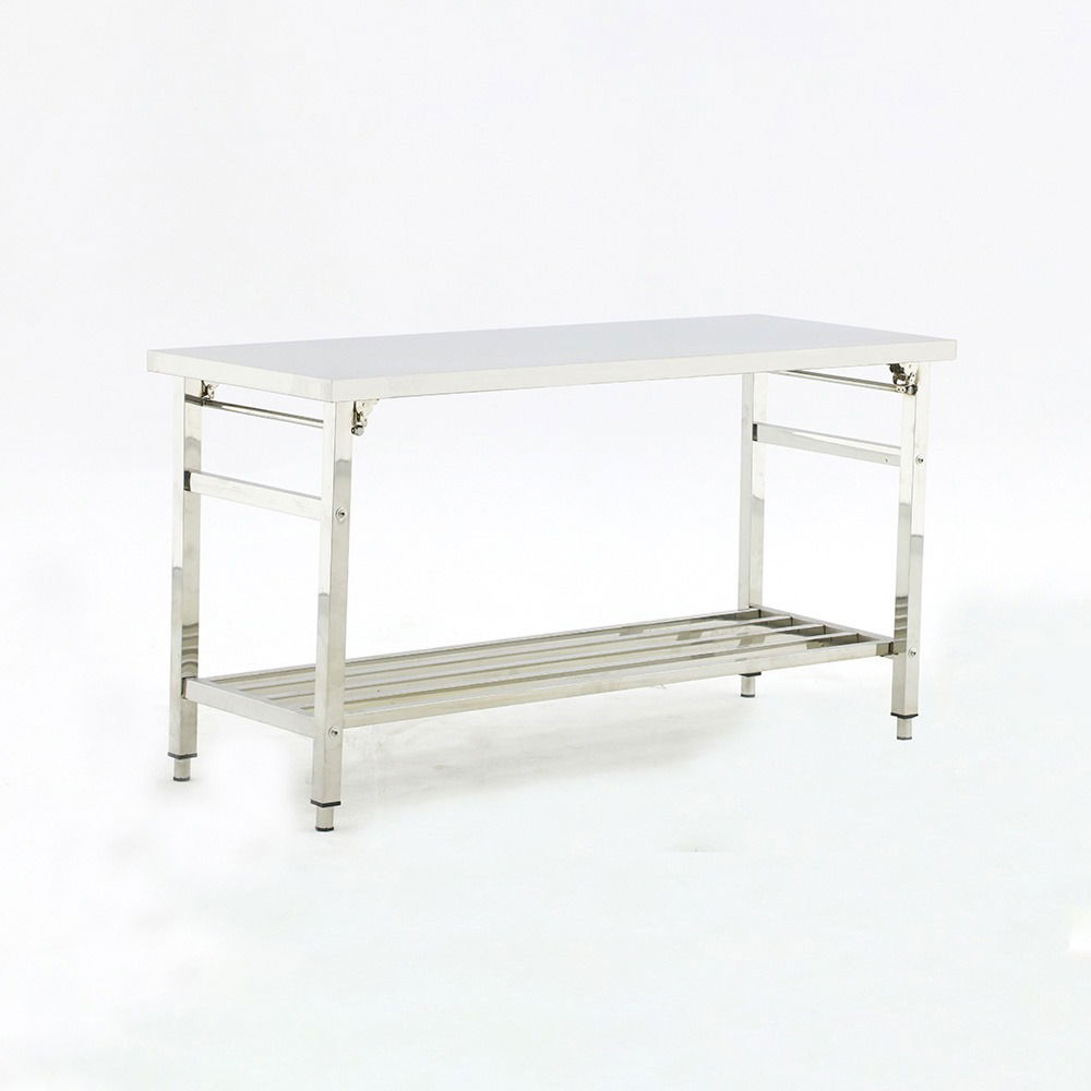 Mesa plegable íntegramente de acero inoxidable calidad AISI 304 y estante rejilla