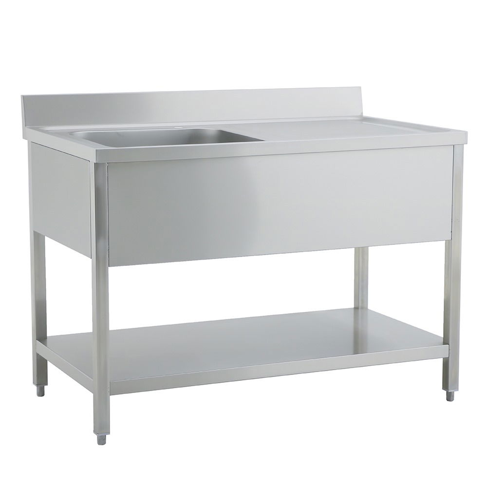 Mesada íntegramente en acero inoxidable calidad AISI 304, estante de acero, zócalo sanitario